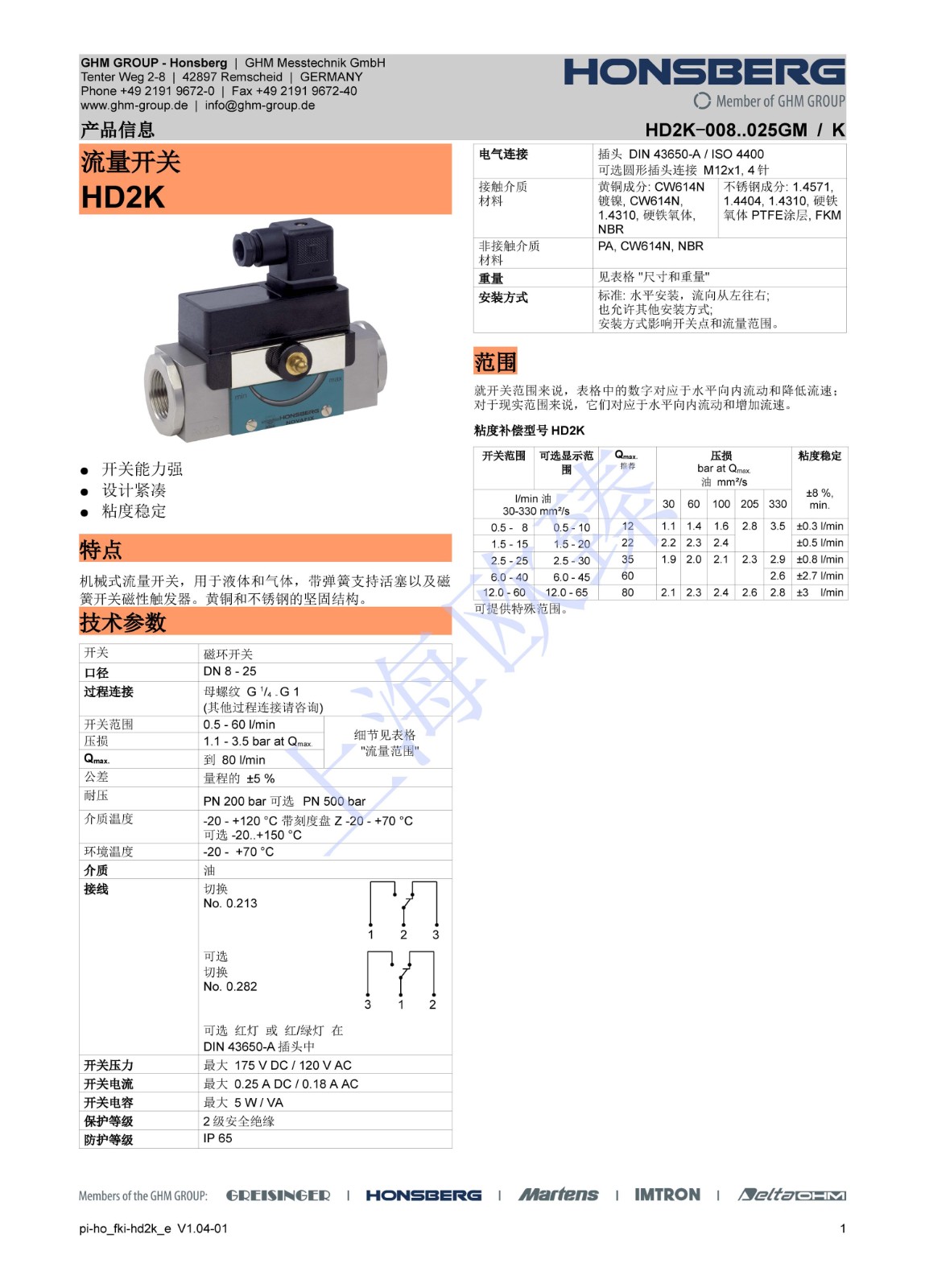 Honsberg有各種原理的流量開關(guān)和流量計,例如活塞、擋板、熱式、渦輪、電磁等。